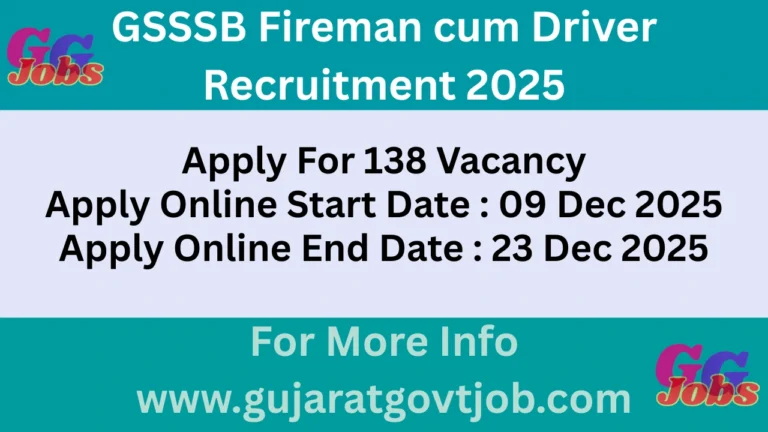GSSSB Fireman Cum Driver Recruitment 2025 : Apply for 138 Posts