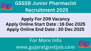 Gujarat Subordinate Services Selection Board (GSSSB) has issued advertisement number 342/202526 for filling up a total of 209 vacancies under Junior Pharmacist Class-3 under the Health and Family Welfare Department through direct recruitment. More information about which is given below.